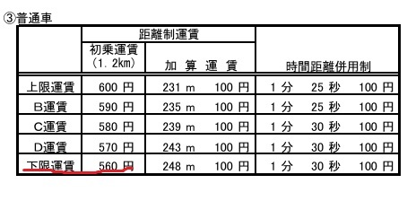 ポイントは、従来の初乗り短縮運賃1.040km500円は廃止され、500円は普通の料金体系に組み込まれたってことです。