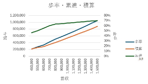 下のグラフは累進歩合と積算歩合の違いの物です。👍
