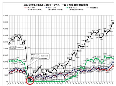 羽田で待つ場合、国際線の第3ターミナルが約半分を占め、第1・第2ターミナルは合わせて25%ほどの稼働です。横浜方面に関しては不明ですが(笑)、1日4,456台の稼働はすごい数字ですよネ。🤷♀️